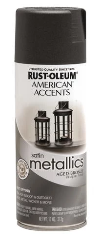 Rust-Oleum® American Accents Metallic Sprays can make a big impact with a small project. Gives your project a soft, elegant sheen that can’t be beat. Provides a protective coating that resists chipping and peeling without the messy metallic rub-off found with similar paints. Durable finish adds a sophisticated luster to frames, furniture, crafts, household decorations, and so much more.