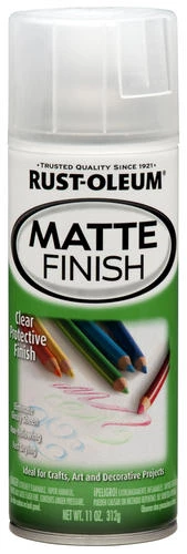 Rust-Oleum® Specialty Matte Finish Spray is a crystal clear coating that adds a layer of protection without the typical glossiness or flare. Because it dries completely clear, it makes no change to the original appearance of the surface, making it especially great for preserving art, antiques, and collectables.