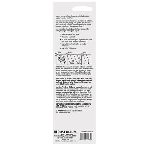 Rust-Oleum Imagine Pearl Paint Pens offers a bright, vibrant color with a glimmer effect for a pearlescent finish. Easy to use, paint flows smoothly out of the pen with rich color saturation for excellent coverage. It is the perfect way to add personalization or details to your craft project.