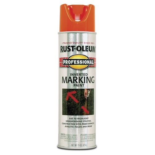 Rust-Oleum® Professional 2X Inverted Marking paint is a convenient and hard-working product that is designed specifically for professional use and professional results. No-mess aerosol produces easy-to-follow marks and is great for underground utilities, athletic fields, landscaping, and more. It also sprays upside down for easier application.