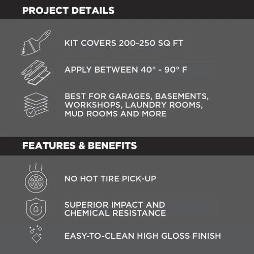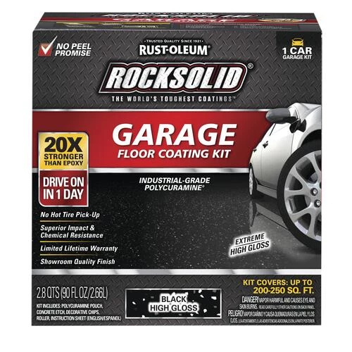 Achieve the maximum adhesion, durability, and protection for your floor with RockSolid® Floor Coating. This coating brightens your garage with a clean, glossy, showroom-quality floor. It applies in one easy coat and protects against gasoline, antifreeze, motor oil, salt, and hot tire pick-up for years to come.