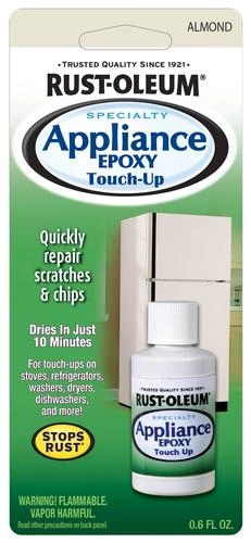 Rust-Oleum® Specialty Appliance Touch-Up Paint is a quick-dry lacquer designed to provide a long-lasting, high-gloss finish on repairs to metal, porcelain and appliances such as stoves, refrigerators, washers, dryers and dishwashers. This washable, moisture-resistant finish is for the exterior of these surfaces. Do not use on surfaces exposed to temperatures over 200°F such as stovetops. This paint also should not be used in sinks, tubs or other water-immersed surfaces.