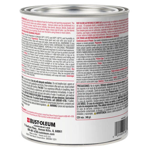 Rust-Oleum Specialty Camouflage Paint helps customize a wide variety of sporting and hunting equipment and vehicles. Available in natural colors and with a flat, no-shine finish for a convincing camouflage. Use on both indoor and outdoor surfaces for a long-lasting, durable finish.