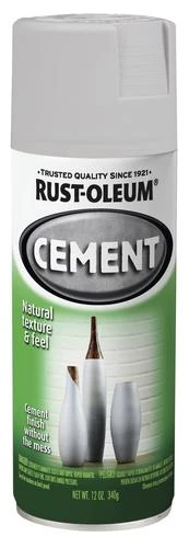 Rust-Oleum® Cement Spray Paint allows you to produce a faux cement finish for your decorative projects without the use of heavy, messy concrete mixes. Decorative finish can be applied to nearly any surface for a quick transformation with a trendy cement finish. Showcase your creativity with fresh cement accents made with an easy to use aerosol spray can.